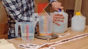 | Seseorang mencampur resin epoxy dan katalis |